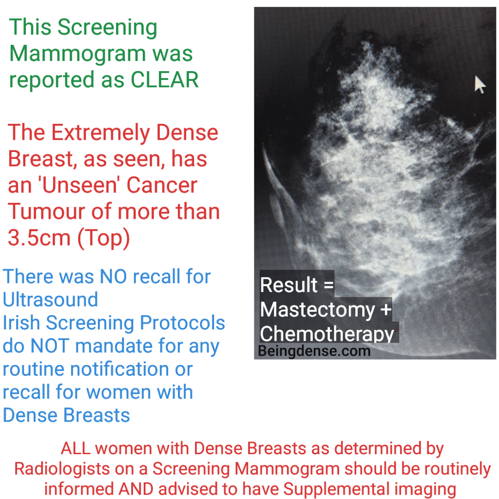 With all of the focus on Women’s Health and advice about Early Detection of Breast Cancer isn’t it incredible that Women who avail of Breast Cancer Screening are given an ‘All Clear’ when their Very Dense Breast Tissue prevent that very result from being a reliable one.