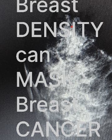 Because both Breast Cancer and Breast Density appear as WHITE Areas on a Mammogram – Breast Cancer can be easily missed on Screening Mammograms