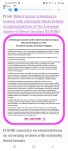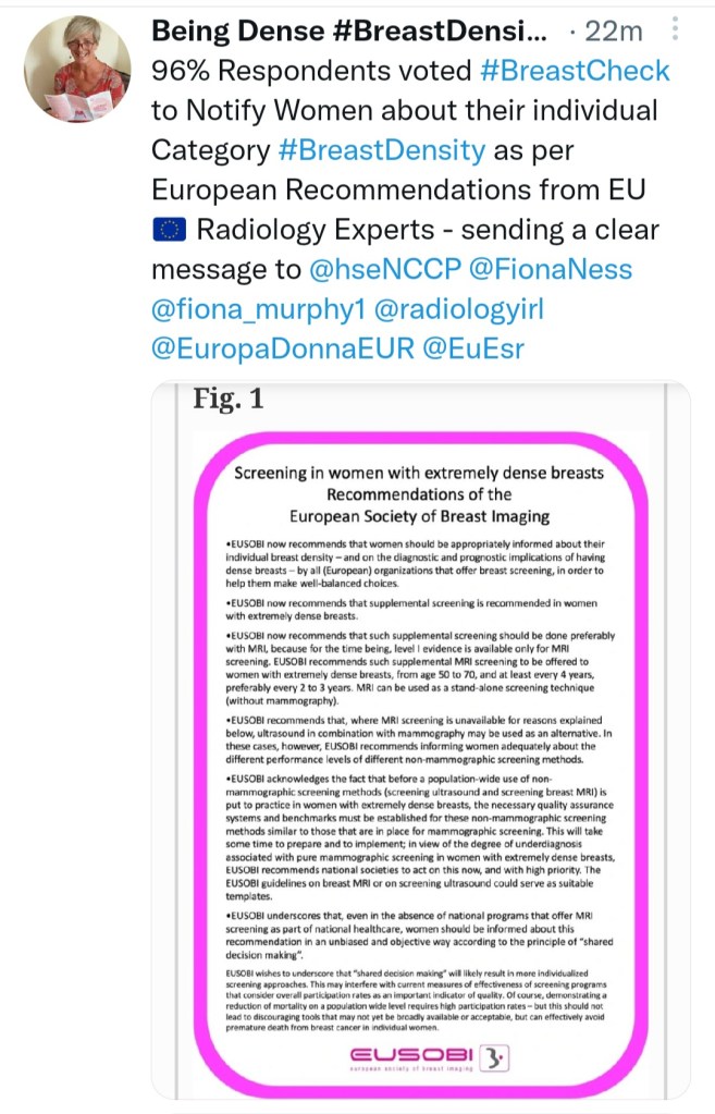 In March 2022 Leading European Radiology Experts put forward their Recommendations on Screening Women with Densebreasts. They also recommend that Women are appropriately notified about their individual level of Breast Density